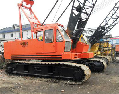 履带吊车是备有履带运行装置的流动式动臂起重机。由动臂、转台等金属结构,起升、旋转、变幅和运行机构等组成。起升和变幅机构采用卷筒缠绕钢绳,通过复滑轮组使取物装置升降和动臂俯仰变幅。旋转机构采用转盘式支承装置。机构有两种驱动方式:①集中驱动。将内燃机的动力通过液力偶合器、动力分配箱,然后分别操纵离合器使各机构运动。②分别驱动。用内燃机一发电机组将动力通过各电动机和传动件使机构运动。适用于工业和林业的起重和装卸作业。